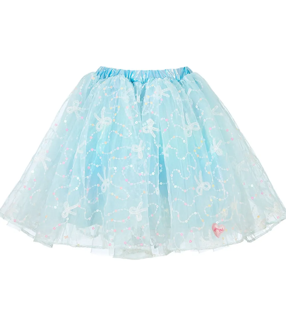 Fin Souza udklædning i form af en nederdel i lyseblå. Nederdelen har et lag tekstil inderst i blå med holografisk effekt. Yderst er der flere lag tyl med palietter og sløjfer. I talejn er der en elastikkant, som kan justeres med indvendige knapper.