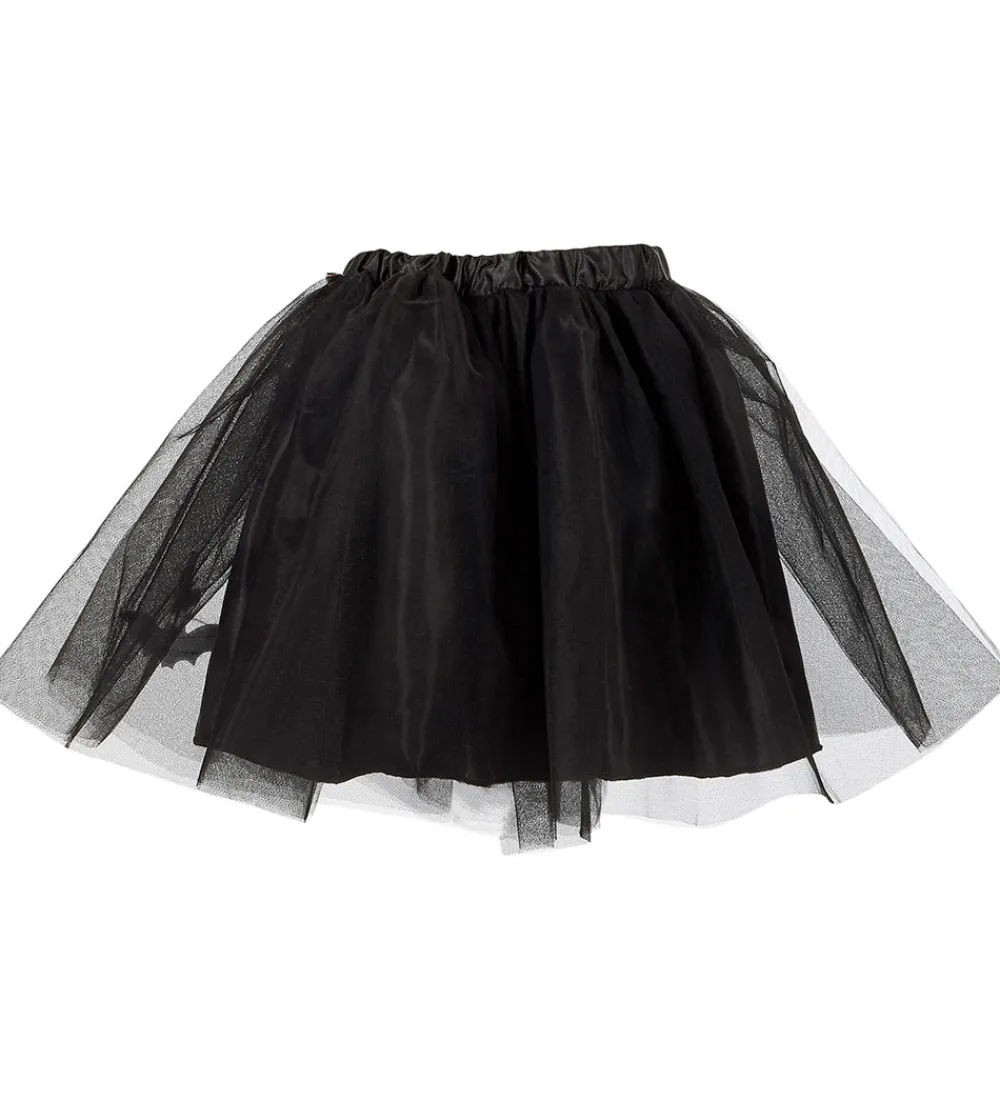 Souza udklædningen er sort med et tylskørt dekoreret med flagermus i sølvglimmer.