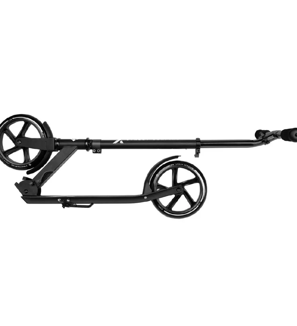 Sjovt Streetsurfing løbehjul i sort med hvide detaljer.