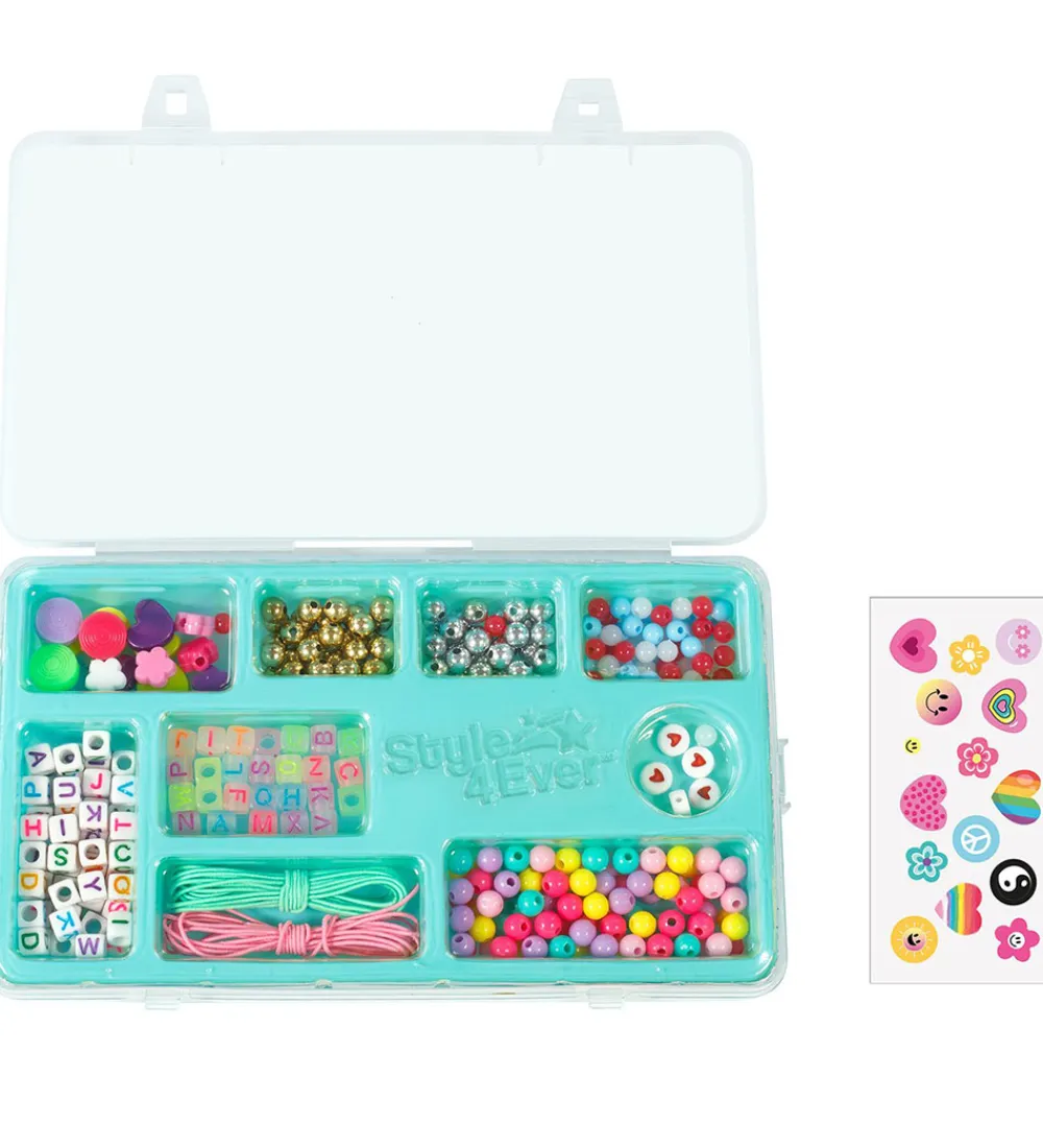 Sejt Style 4 Ever kreasæt med over 300 farverige perler, bogstaver og fine motiver til at lave sit eget armbånd. Sættet indeholder diverse dekorative elementer, hvilket gør det sjovt at skabe unikke venindearmbånd. Perfekt til kreative stunder.