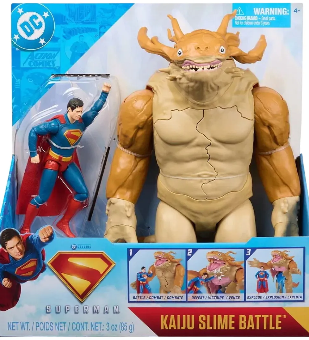 Seje Superman legetøjsfigurer bestående af uhyret Kaiju og Superman. Med figurerne kommer en pose slim til deres kamp. Perfekt til små superhelte-fans, der elsker spændende eventyr og actionfyldte lege med deres yndlingshelt.