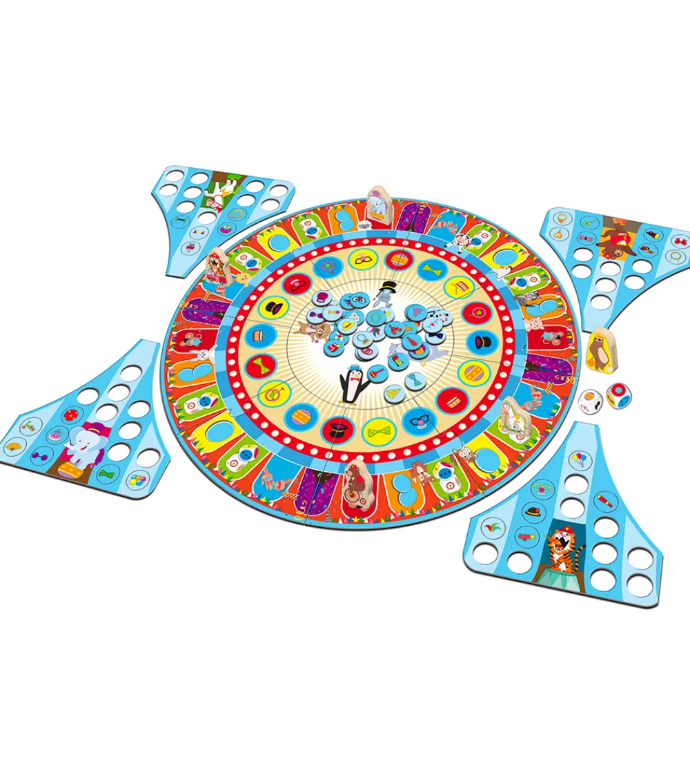 Underholdende TACTIC brætspil med farverige cirkusdyr.