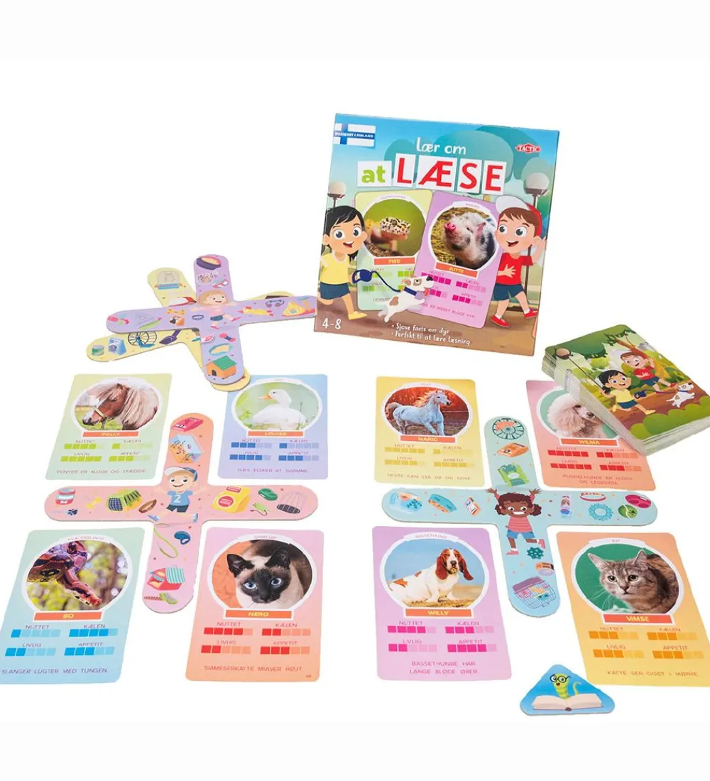 Sjovt TACTIC kortspil med titlen “Lær om at læse”.