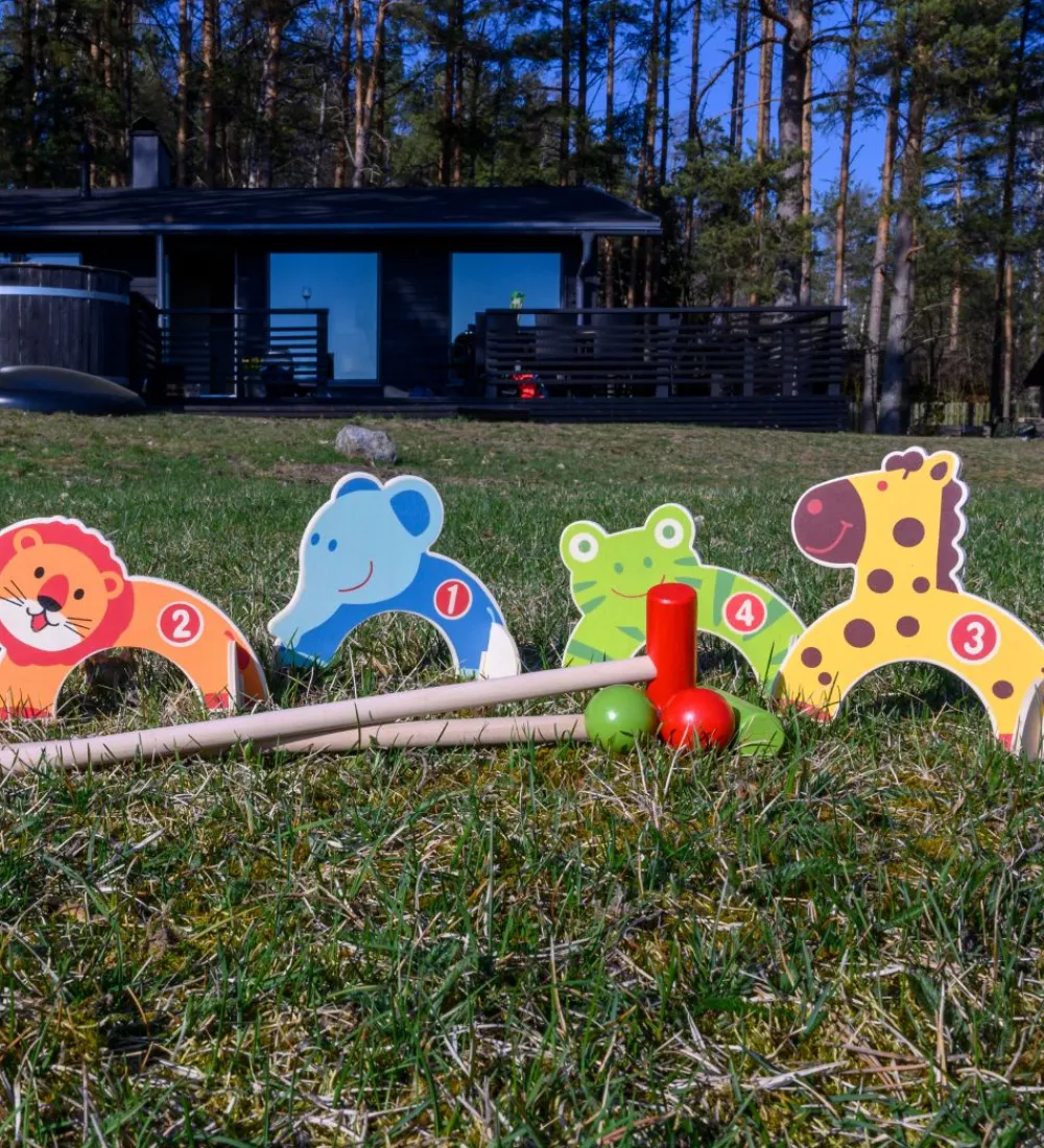 Fedt TACTIC spil i form af det sjove udendørsspil kroket med dyremotiver på buerne.