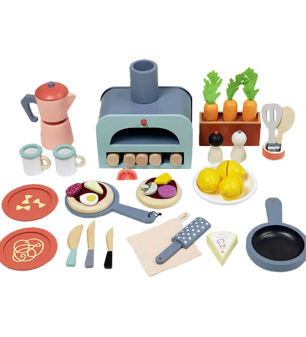 Skønt Tender Leaf legekøkken i naturligt træ, mint, blå og navy.
