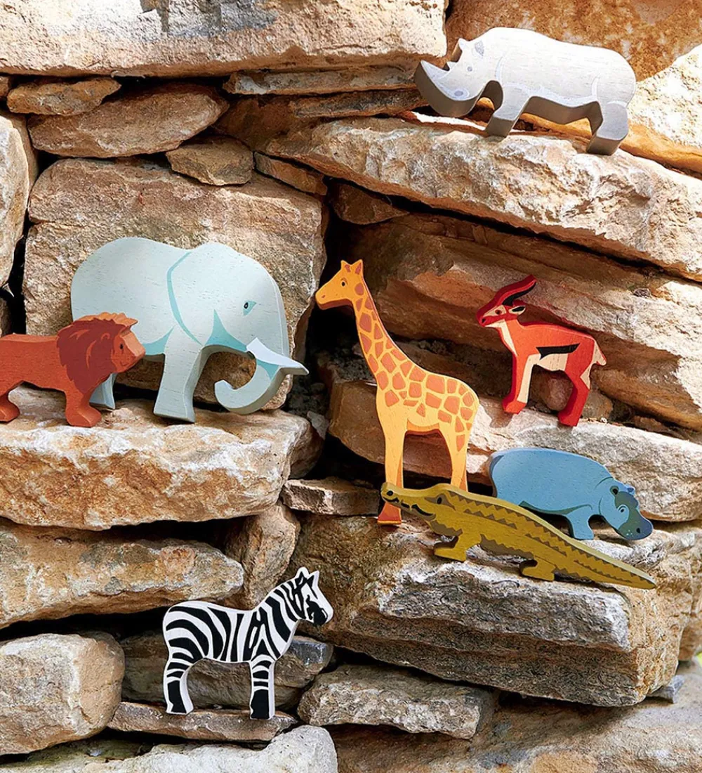 Fint Tender Leaf trælegetøj i naturlig træ og fine farver, som er formet som følgende savannedyr: