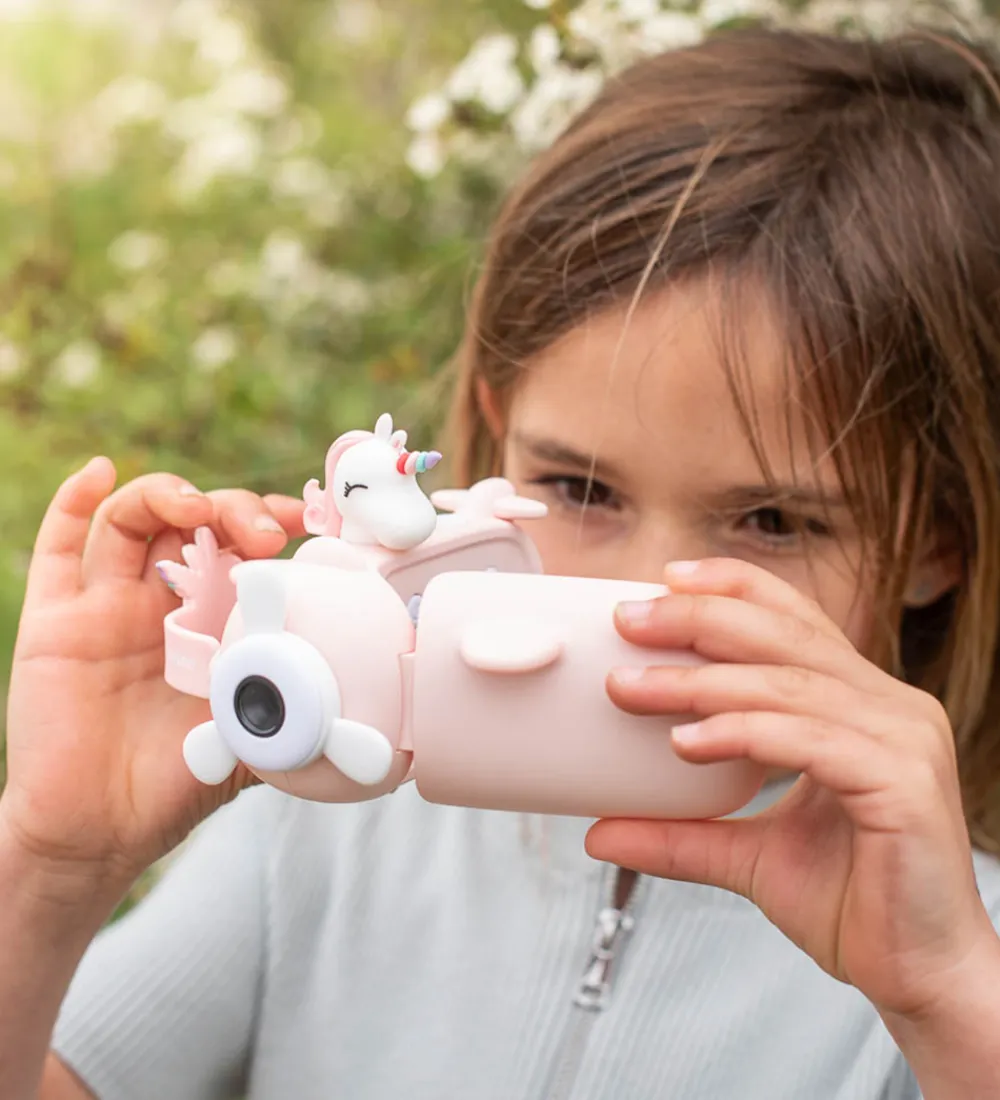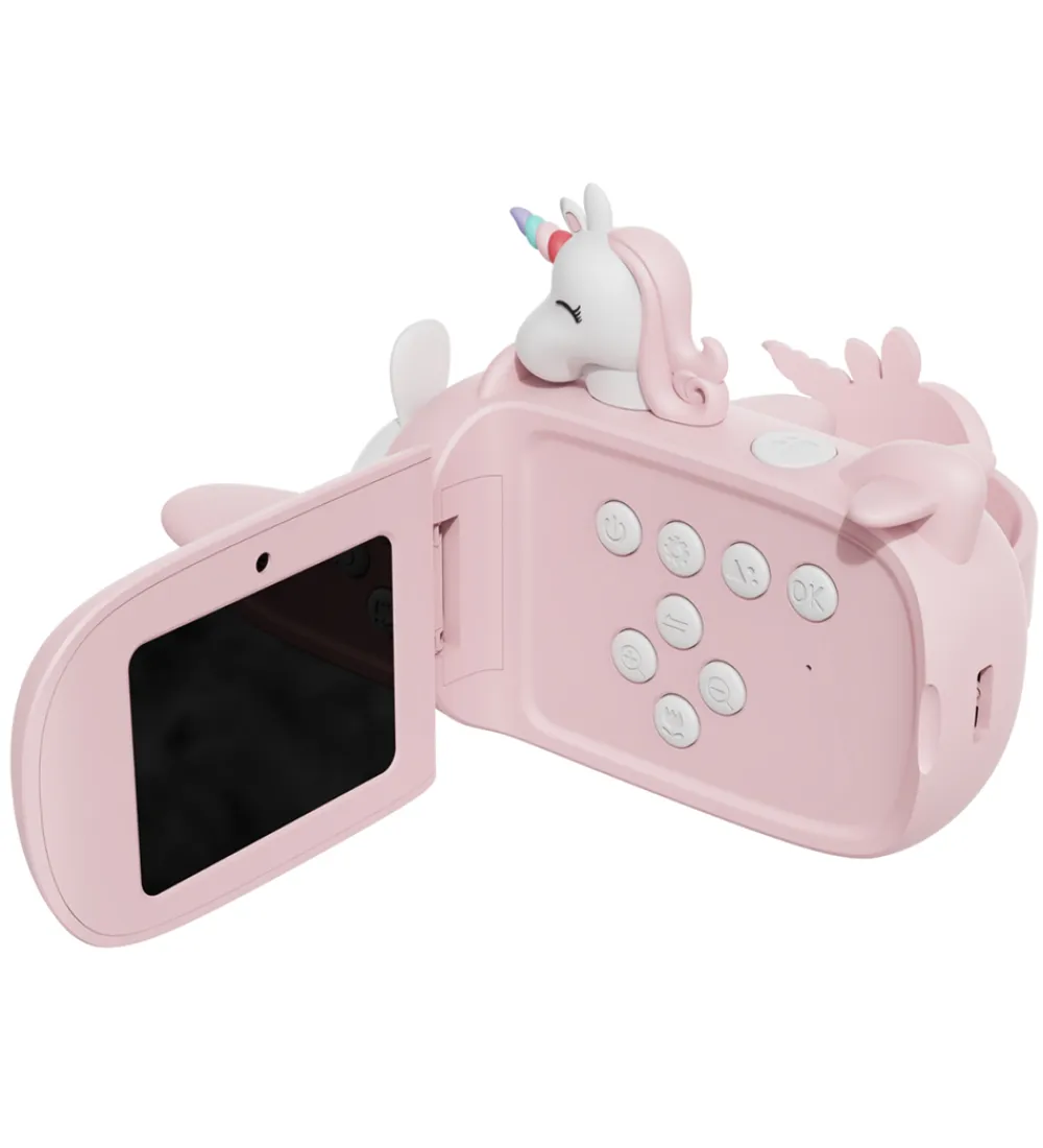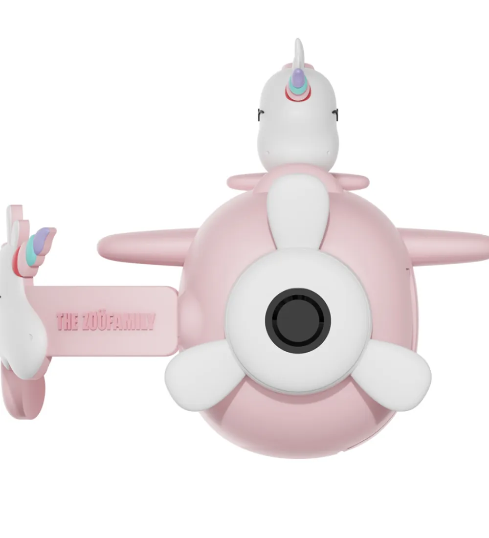 Flot The Zoofamily videokamera fra Zoo Video-serien, lavet så det ligner en flyvemaskine i et rosa enhjørningedesign. Der medfølger et klistermærke-ark, så videokameraet kan dekoreres i en personlig stil.
