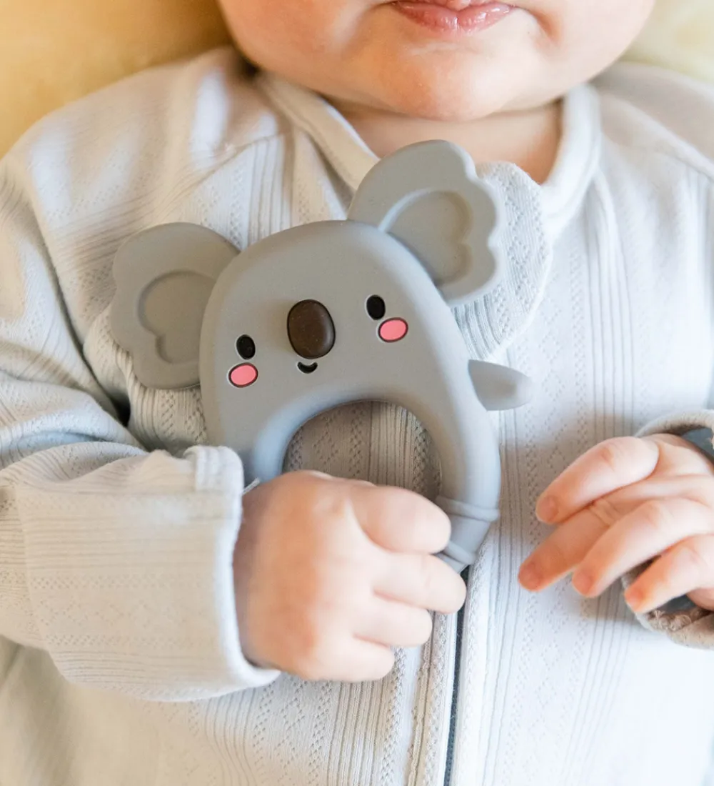 Skøn Tiger Tribe bidering i grå og formet som en koala. Bideringen stimulerer og beroliger tandkødet, samtidig med at den er sjov for de små at lege med.