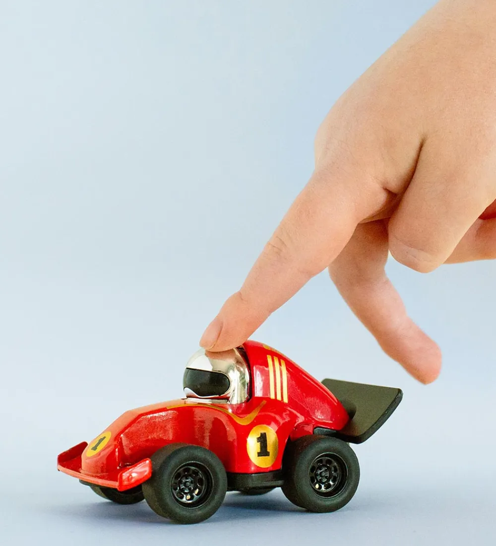 Smart Tiger Tribe racerbil i rød med seje detaljer. Racerbilen “Flash” kan køre, når man trykker chaufføren på hovedet.