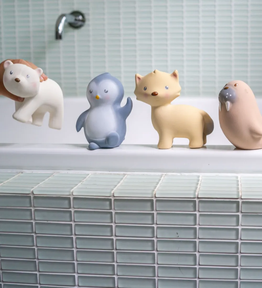 Tikiri bidelegetøjet kan tages med i badet, så barnet har en god kammerat med, som altid er klar på lidt spas i vandet. Isbjørnen er i naturgummi og er derfor også perfekt til at lindre de smås gummer, når de klør. Bidedyret har en rangle, som laver beroligende lyde når man ryster det og der er forskellige teksturer. Isbjørnen behøver altså ikke kun at være med i badet.