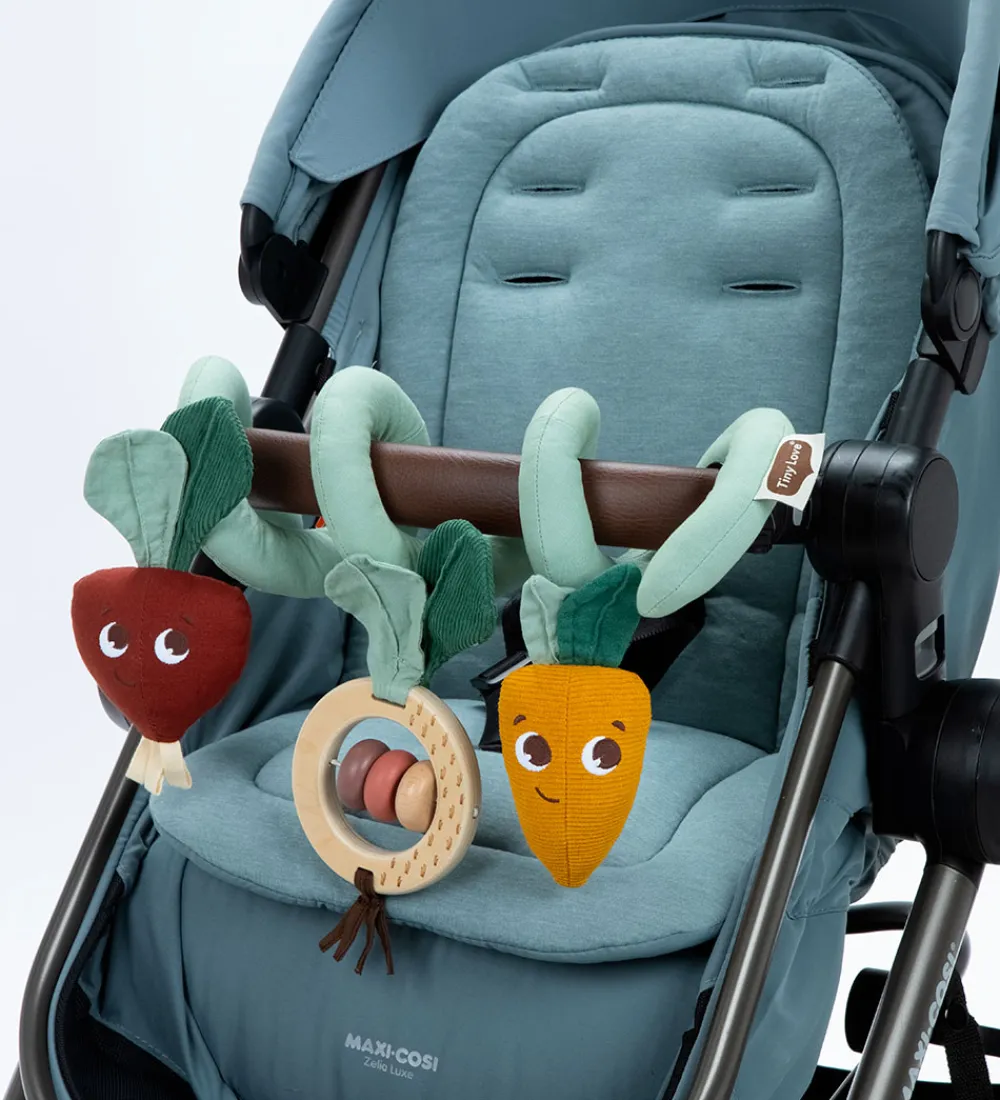 Tiny Love aktivitetslegetøjet har flere engagerende elementer der styrker kreativiteten hos den lille, samt kommunikation og sanserne. Aktivitetslegetøjet kan sættes på de fleste klapvogne.