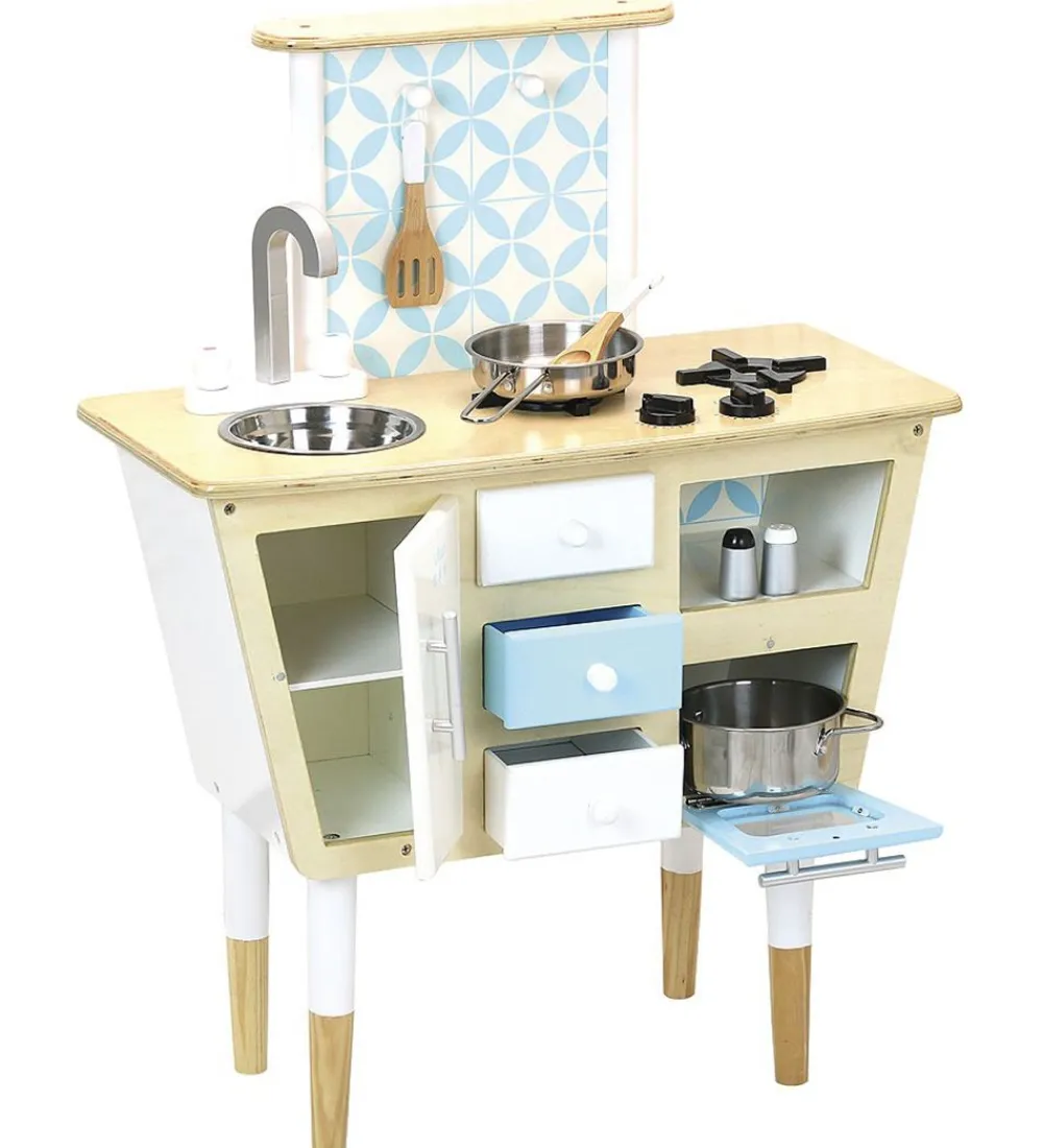 Legekøkkenet indbyder til masser af leg, og med det rigtig fine design i retrostil ser det lige så flot ud på børneværelset som i stuen eller i køkkenet.