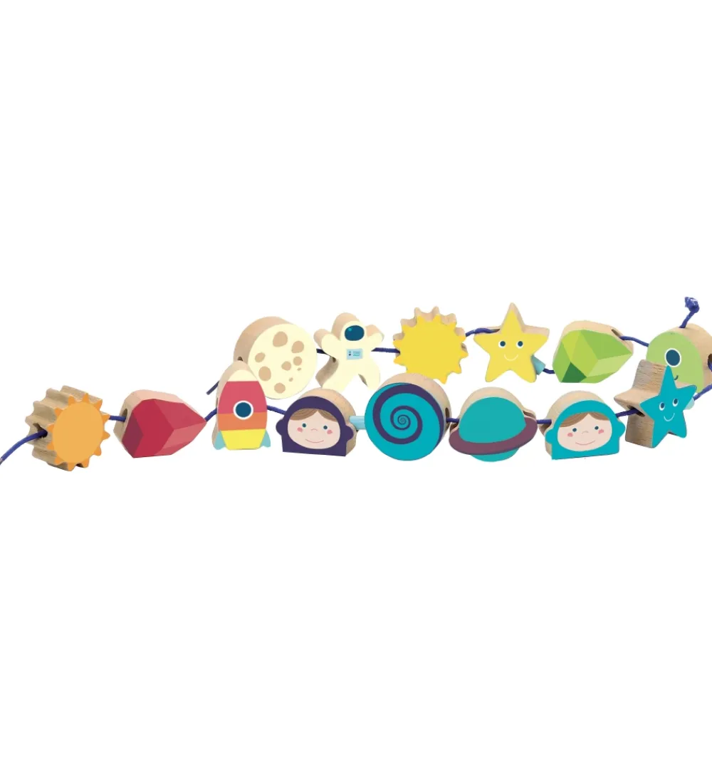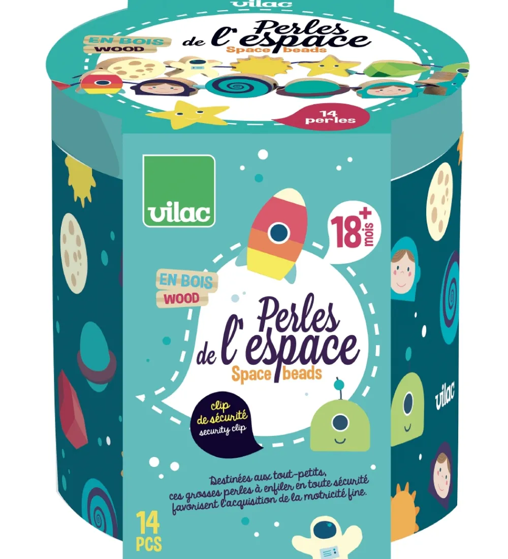 Vilac perlerne bestaår af 14 dele og har forskellige former som er runde, firkantede og aflange med rummet som det gennemgående tema. Perlerne kommer i en rund, aflang bøtte med låg og håndtag.