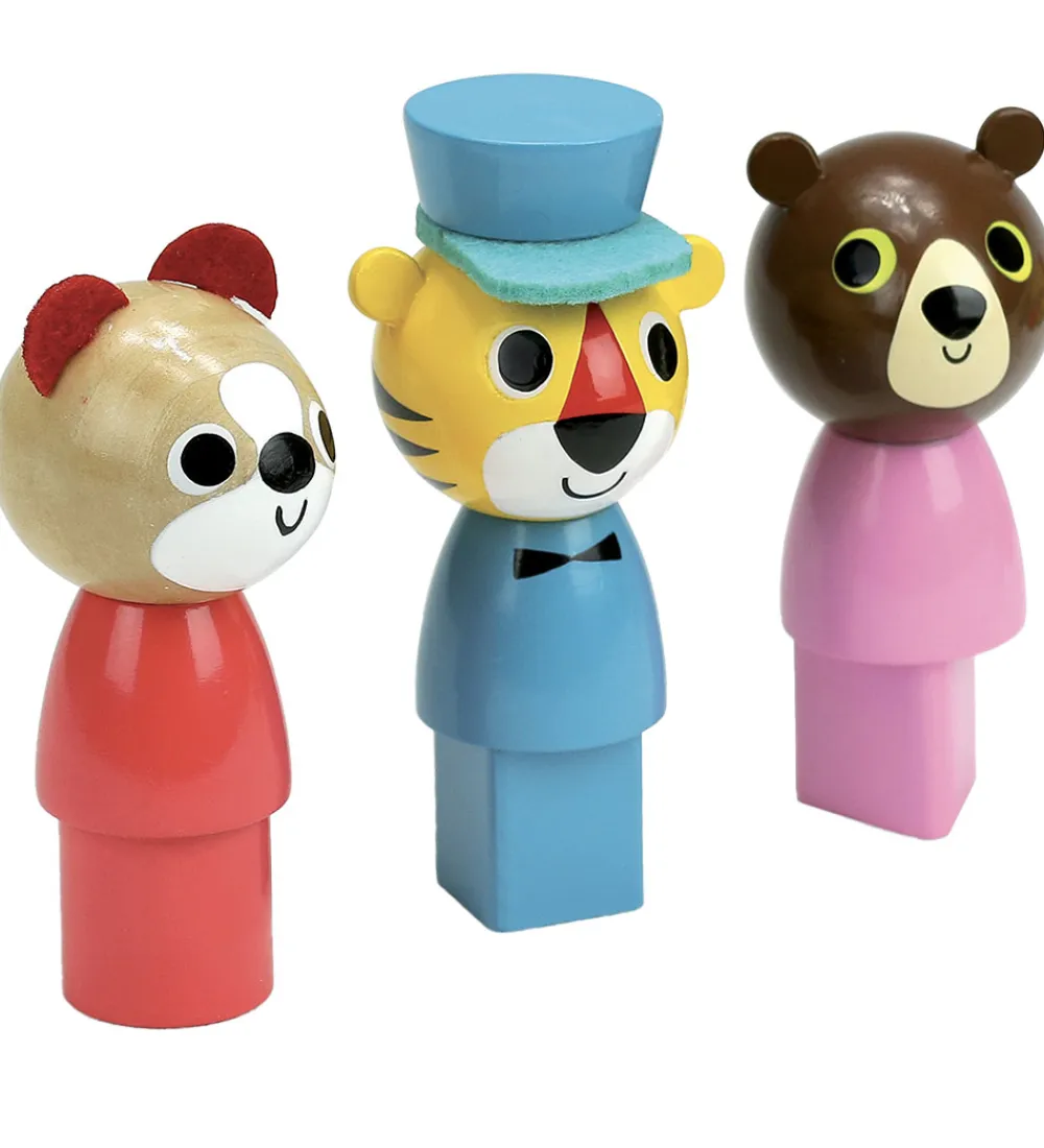 Sjovt Vilac legetøj bestående af en bus med tre dyr siddende i.
