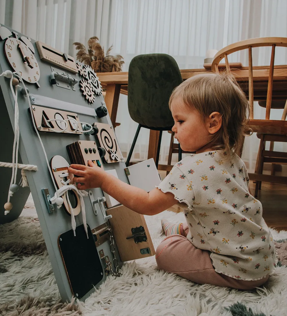 Model: Standing Busy Board Woobiboo PLUS, Style: WBB-TMS-PLUS-005, Farve: Grey/Natural