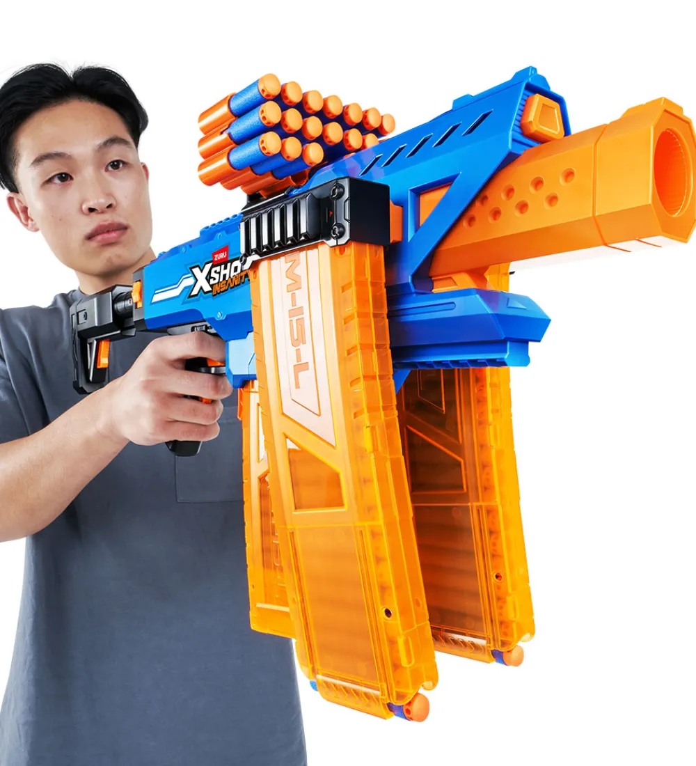 X-SHOT skumgeværet har 3 clips og en clip-forlængelser, så man ikke behøver at genlade. Skumgeværet kommer med 72 skud. Geværet er helt motoriseret og kan skyde op til 27 meter.