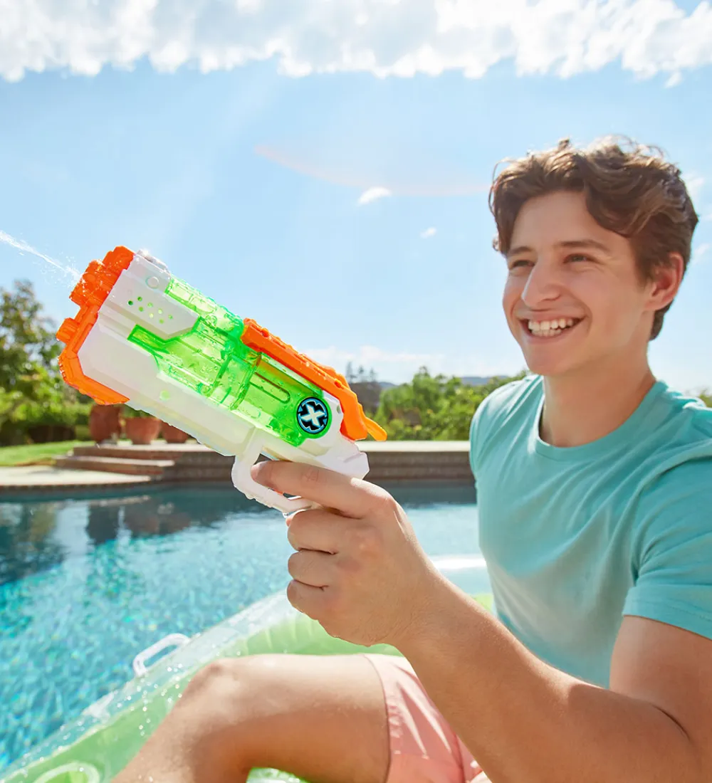 Sjov X-SHOT vandpistol i orange, grøn og hvid. Vandpistolen har en kapacitet på 170 ml.