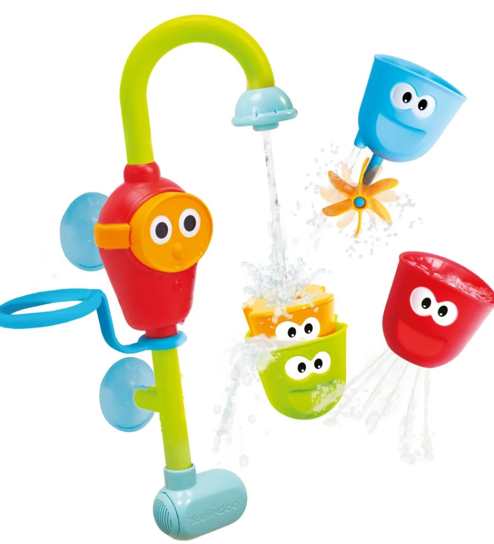 Yookidoo badelegetøjet vil med sikkerhed gøre tiden i badet sjovt. Vandpumpen sættes fast med sugekopper på badekarret eller væggen, med den nederste del forbliver i vandet. Herefter kan barnet pumpe vandet ud af pumpens tud. De små kopper har forskellige vandeffekter, som kan undersøges i timevis. Kopperne kan stables på mange forskellige måder, det er kun fantasien der sætter grænser.