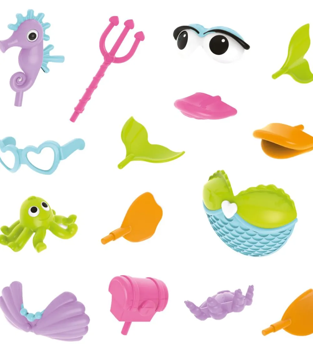 Yookidoo badelegetøjet vil med sikkerhed udløse barnets fantasi og kreativitet samt gøre tiden i badet sjov. Barnet kan designe sin helt egen havfrue and ved hjælp af de 15 forskellige dele.