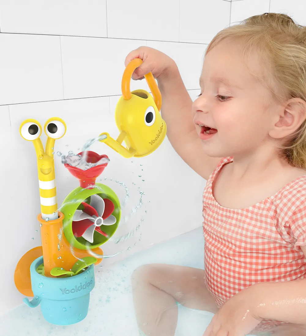 Yookidoo badelegetøjet vil med sikkerhed gøre tiden i badet sjov. Brug vandkanden til at vande urtepotten og se de sjove reaktioner. Badelegetøjet kan sættes op med den smarte sugekop.