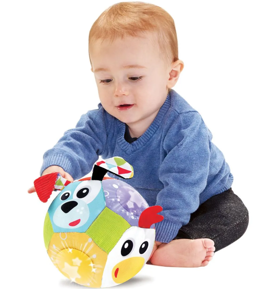 Yookidoo bolden er i en dejlig blød kvalitet, med et blødt fyld. Bolden har både lys og lyd, som aktiveres når man leger med bolden, og der er en tænd/sluk knap hvis man skal være stille.